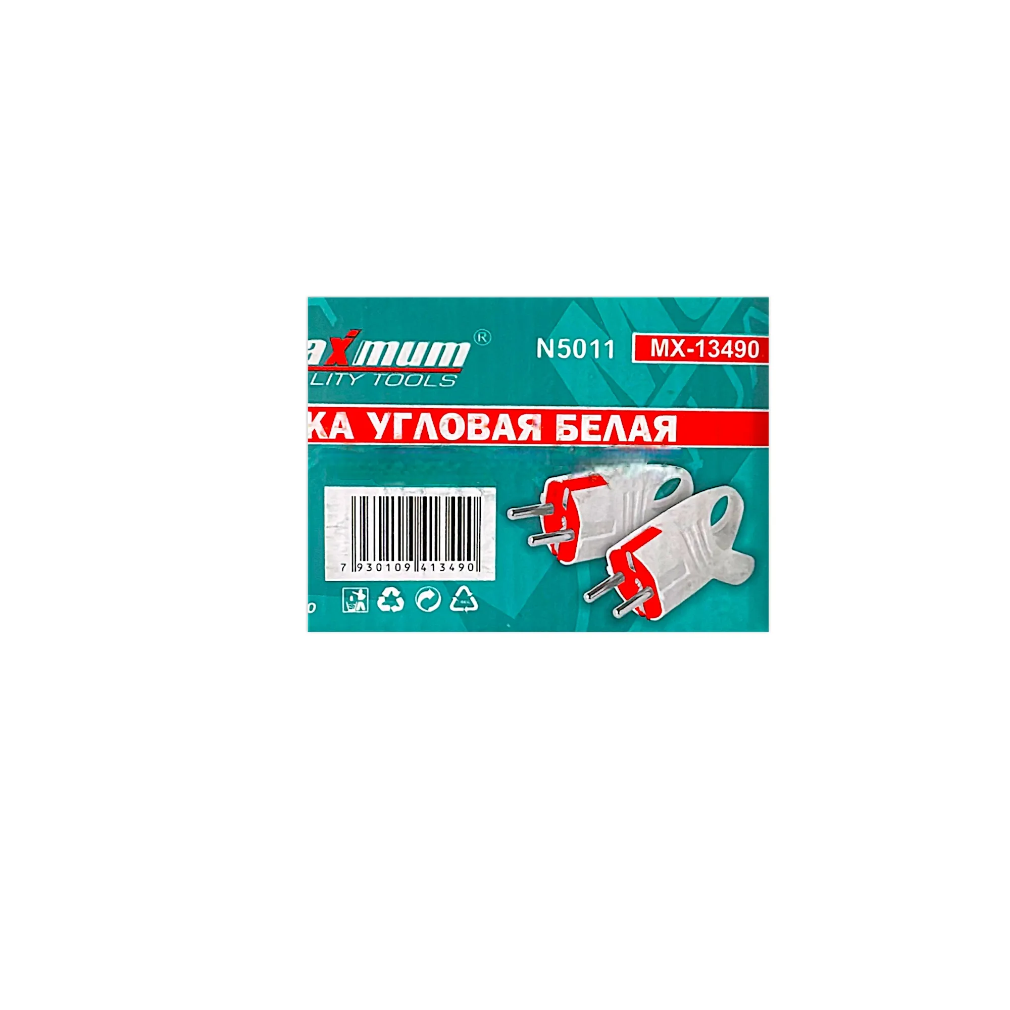 Вилка угловая белая с ушком 16 А