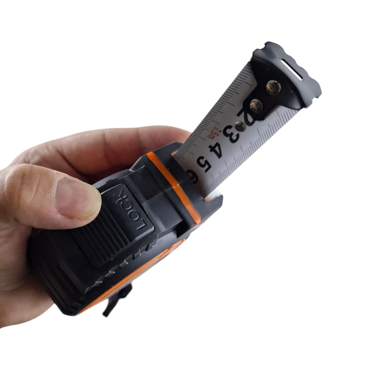 Усиленная клипса для крепления на ремне и прочный ремешок на запястье делают эту рулетку строительной идеальной для работ на высоте.