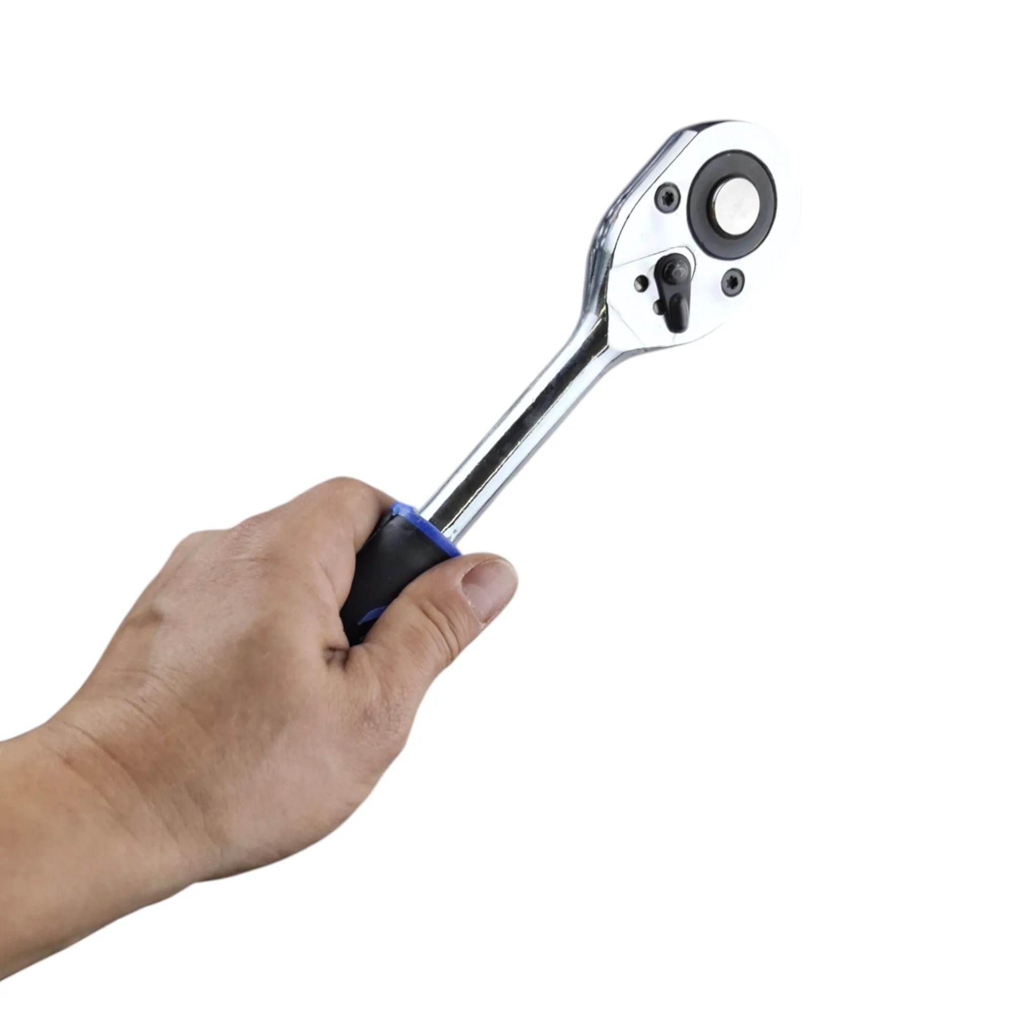 Набор инструментов Maximum Quality Tools включает в себя торцевые головки и ключ-трещотку с удлинителем, которые предназначены для монтажа и демонтажа резьбовых соединений. Комплект входят торцевые головки самых популярных размеров. Высококачественная CrV сталь и хромированное покрытие созданы для придания необходимой прочности и твердости. Удобная прорезиненная ручка трещотки обеспечивает комфортную работу.