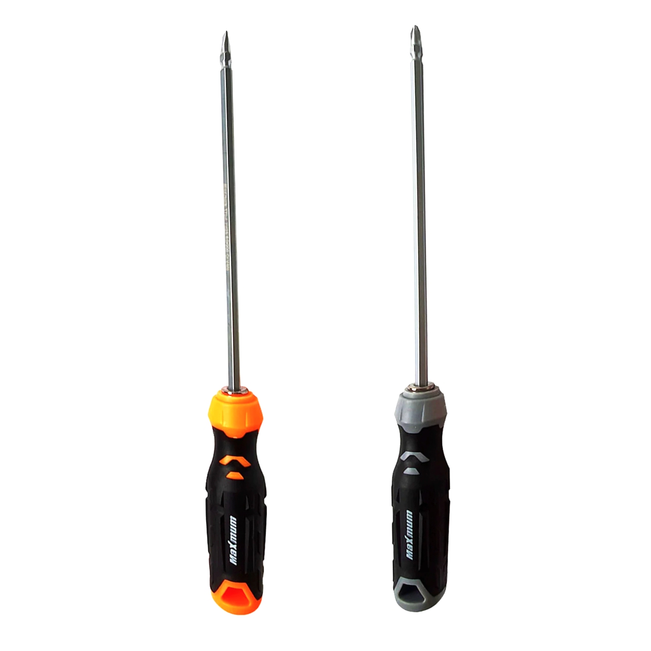 Удлиненная отвертка 2 в 1 со стержнем 200 мм от Maximum оборудована наконечником типа PH3 и SL8 и выполнена из высокопрочной стали CrMoV.