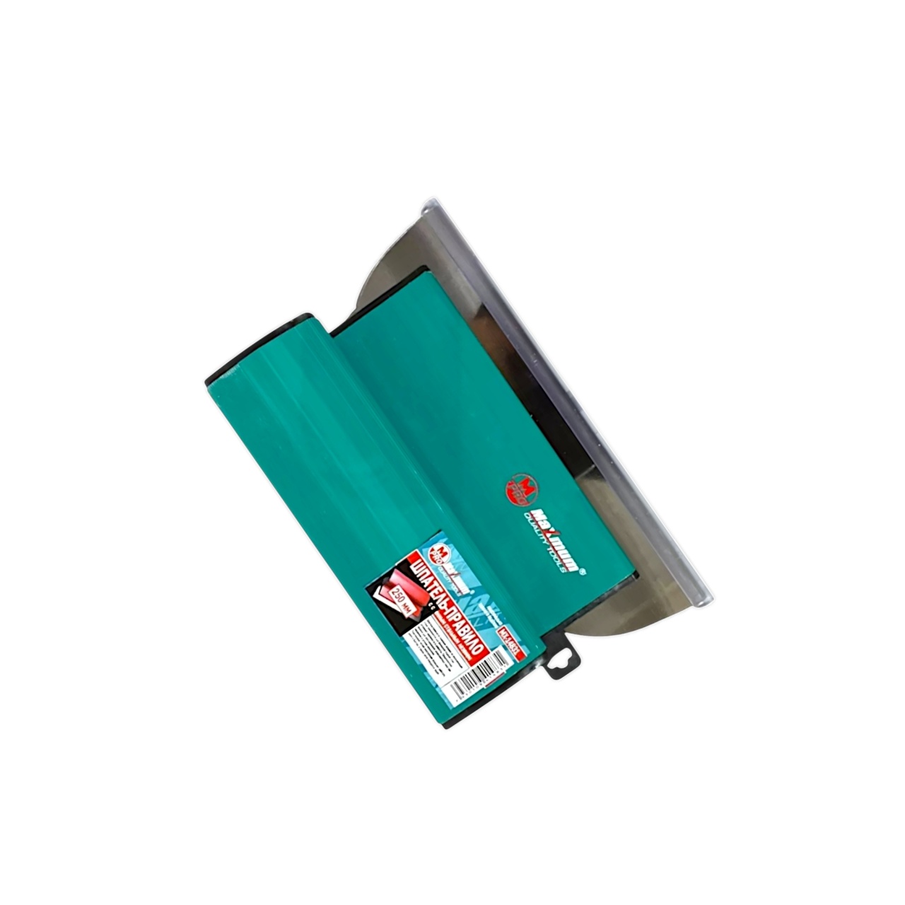 Шпатель 250 мм длиной используется совместно с маяками при распределении штукатурки или шпатлевки, работать с ним удобно как одной, так и двумя руками.