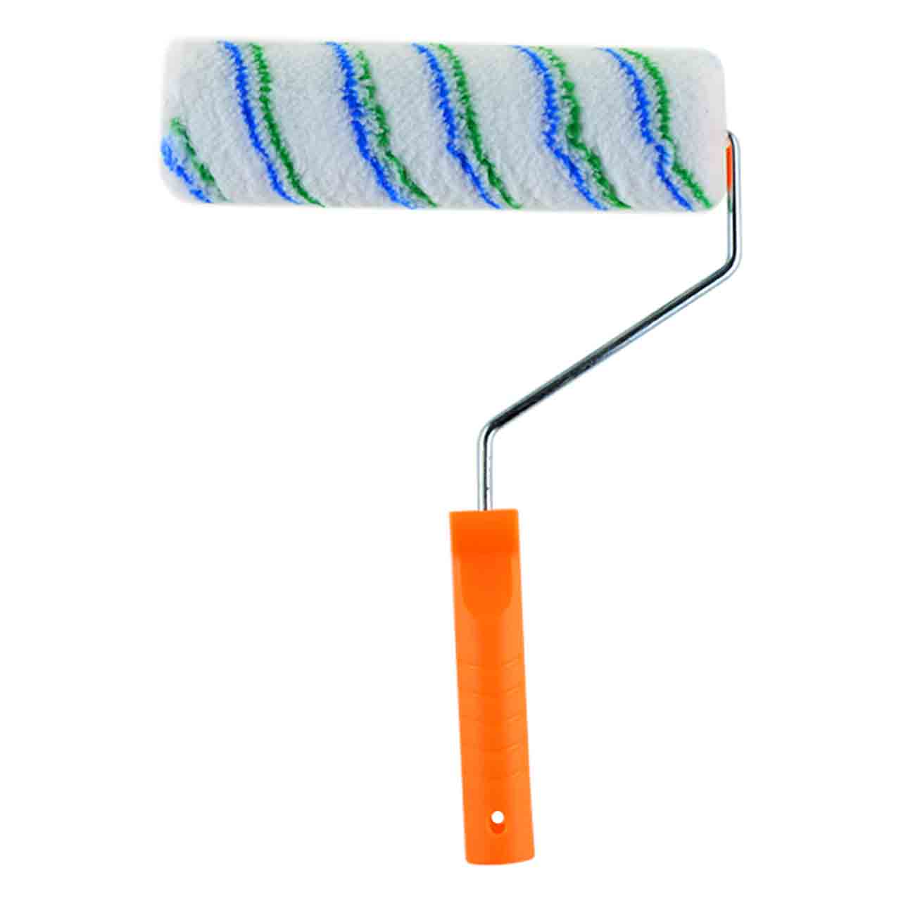 Валик малярный с рукояткой выполнен из полиакрила, который не оставляет ворса и легко чистится. Валик состоит из пластмассового ролика, металлического бюгеля 8 мм с пластиковой ручкой 13 см и шубки, которая крепится к ролику. Используется для красок на водной основе.