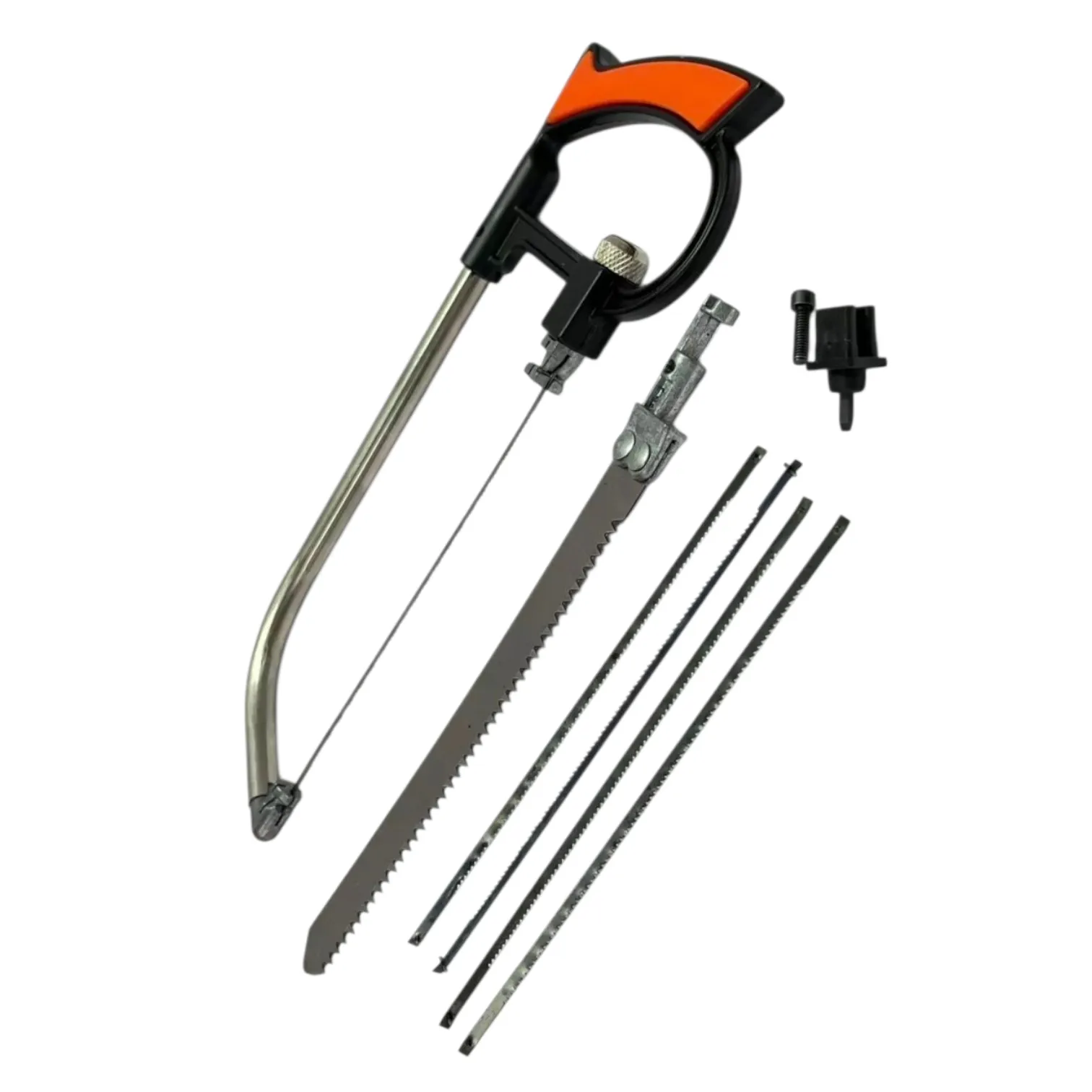 Многофункциональная пила 250 мм поставляется в комплекте с 6 сменными лезвиями, которые применяются для резки заготовок из дерева, пластика и мягких металлов. Может быть использована как пила, ножовка и лобзик при установке соответствующих насадок. Металлический корпус ножовки 250 мм дополнен пластиковой рукояткой, которая не скользит и удобно лежит в руке. Благодаря продуманной конструкции лезвия легко и быстро меняются.