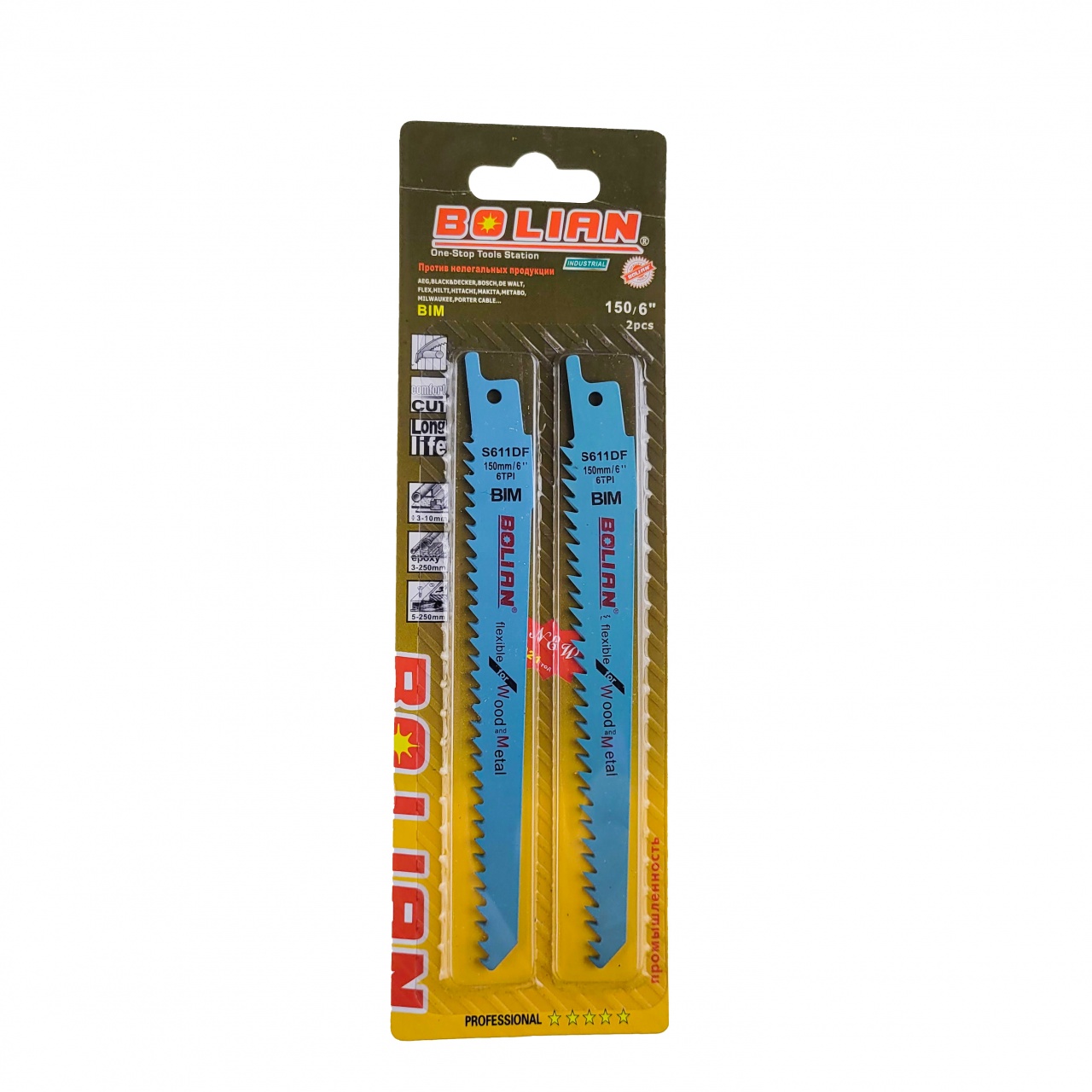 Полотно для сабельной пилы 6 TPI 150 мм, «Bolian», S611DF