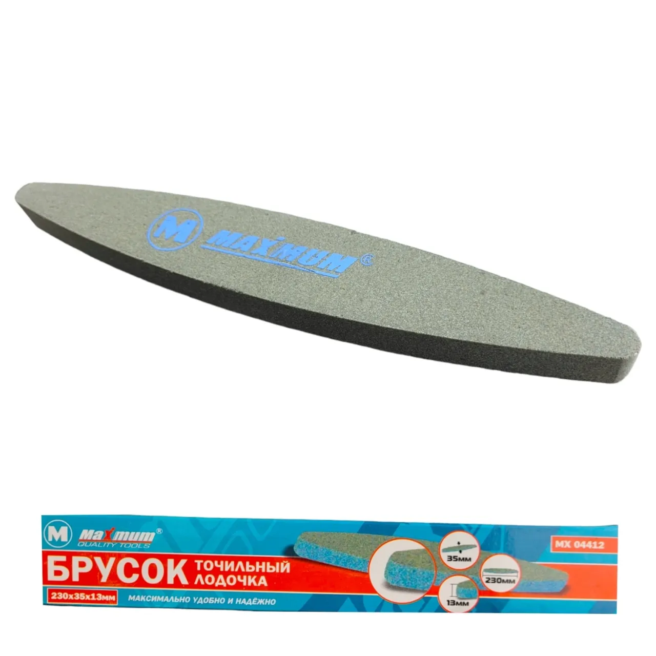 Брусок точильный «лодочка» Maximum Quality Tools применяется для ручной правки, заточки режущего инструмента в том числе кос. Абразивный материал - корунд (оксид алюминия).