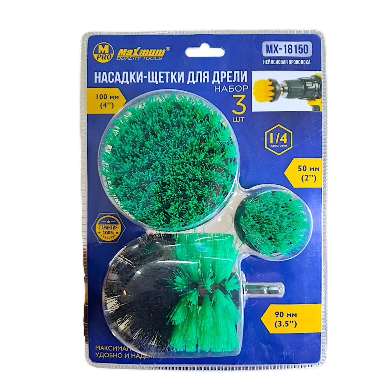 Комплект из трех нейлоновых щеток-насадок для дрели или шуруповерта с шестигранным хвостовиком 1/4". Нейлоновые щетки предназначены для эффективной и бережной очистки, удаления загрязнений, ржавчины и старой краски с различных поверхностей. Набор идеально подходит для использования в гараже, мастерской, на даче или при проведении домашних ремонтов.