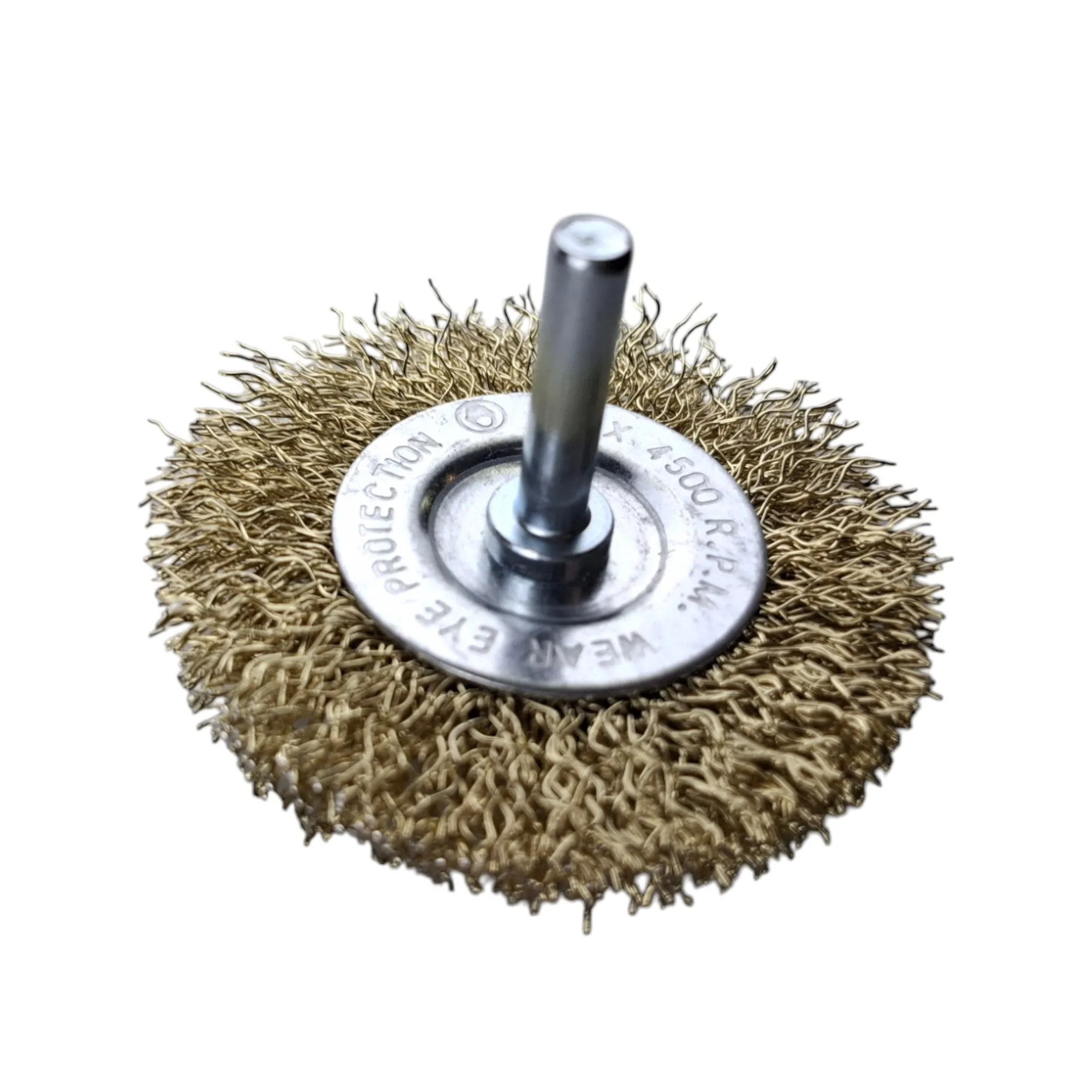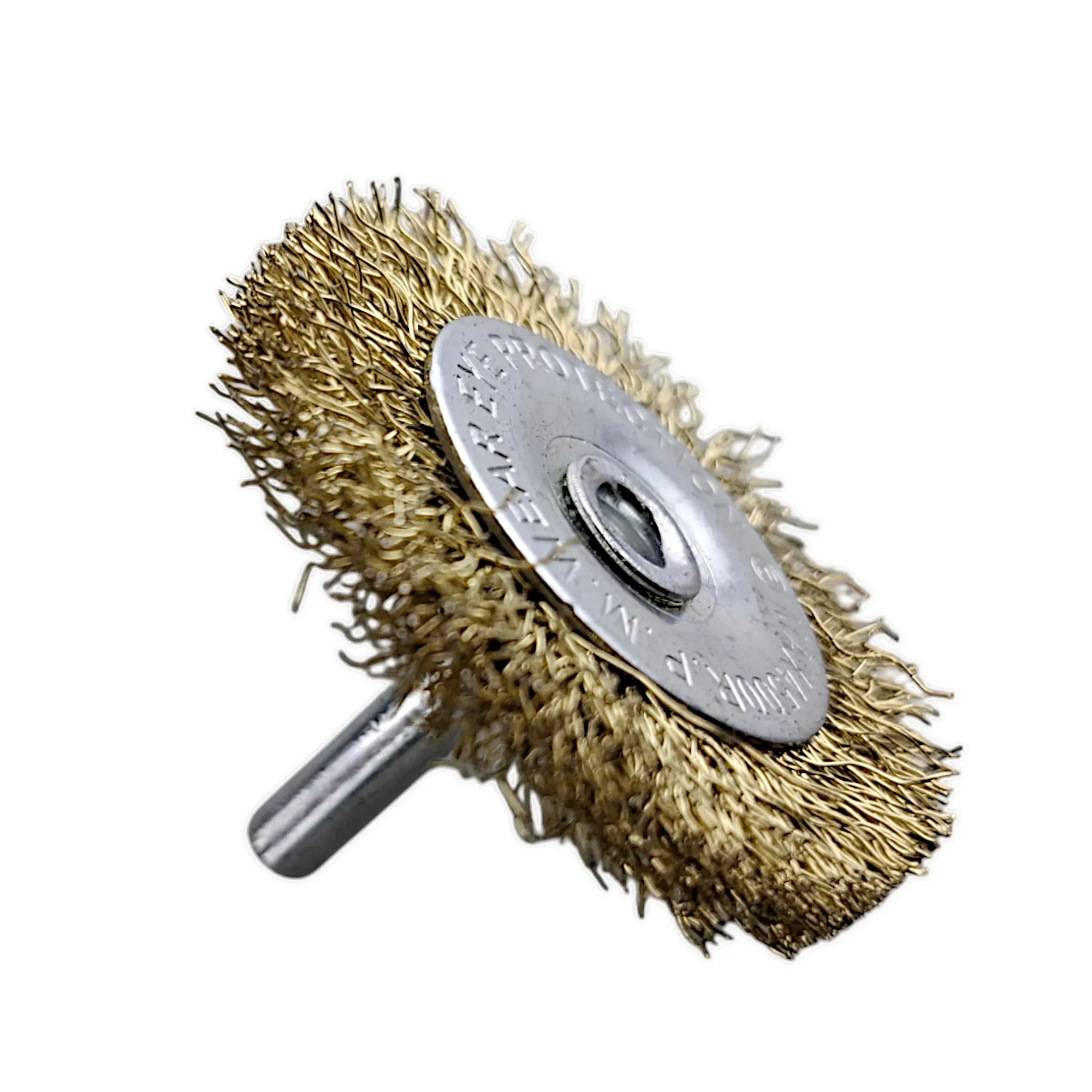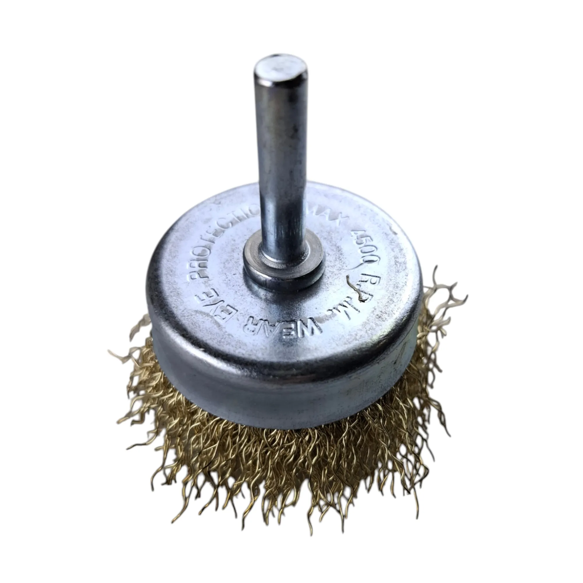 Набор корщеток с волнистой латунированной щетиной длиной 25 мм от "Maximum" отлично подойдут для снятия с поверхности грязи и ржавчины. Хвостовик цилиндрический 6 мм.
