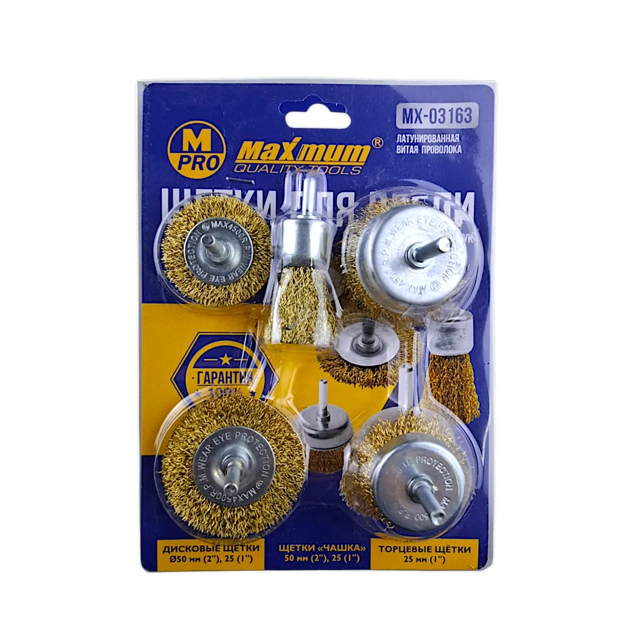 Набор щеток с волнистой проволокой 5шт, 25/38/ 50/ 65/ 75мм, латунированные, "MAXIMUM" MX 03163