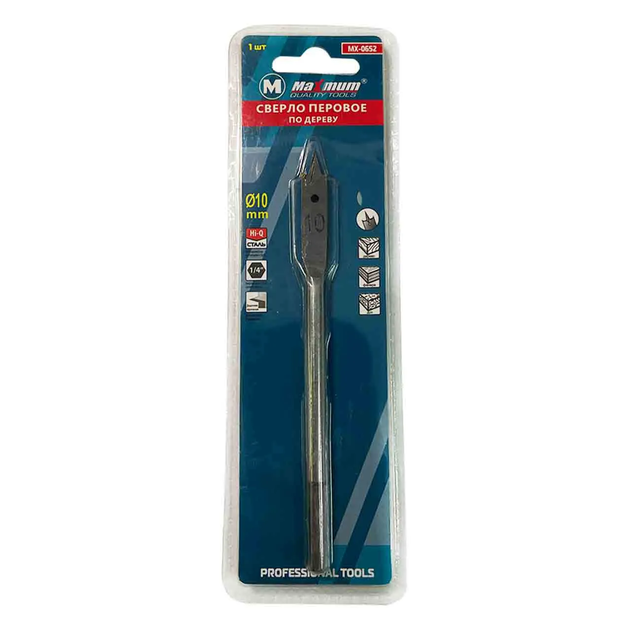 Сверло по дереву перьевое 10 мм создает ровные отверстия мягких и твердых породах древесины, ДВП, ДСП, фанеры и т. п. Хвостовик шестигранный 1/4 крепится к инструменту и предотвращает проворот сверла в патроне. Насадка может использоваться с дрелью, а также сверлильным станком.