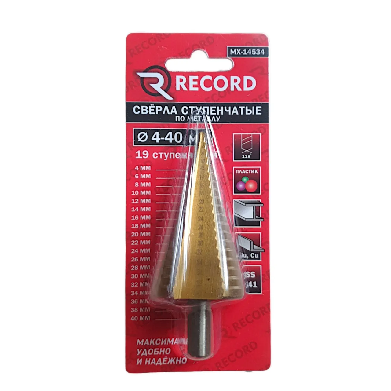Сверло ступенчатое может обрабатывать металл, пластик, гипсокартон, трубы, дерево. Благодаря острому наконечнику оно может врезаться даже в самый твердый металл.
